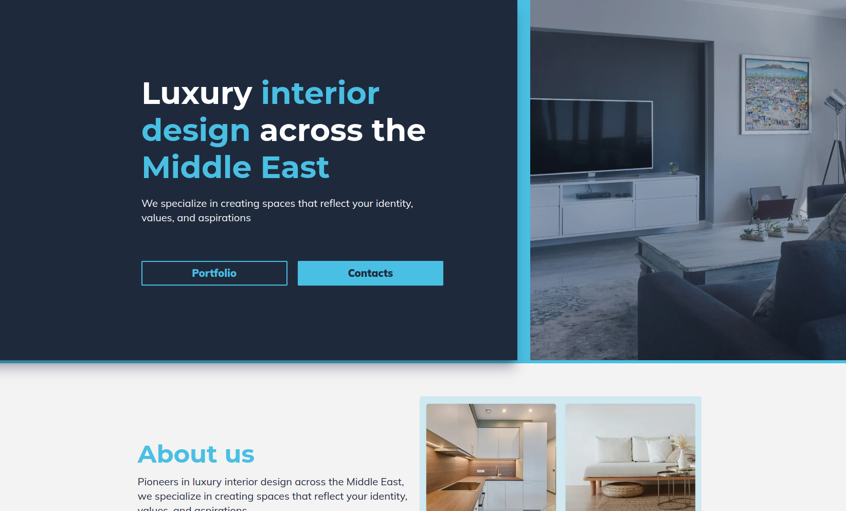 Work in progress. Landing page desing and development for a company based in the UAE doing interior design and fitouts